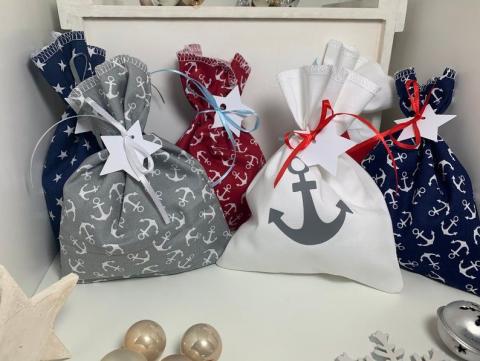 24 schöne und liebevoll genähte Baumwollsäckchen,farblich abgestimmt und einige mit bedruckten Motiven.
