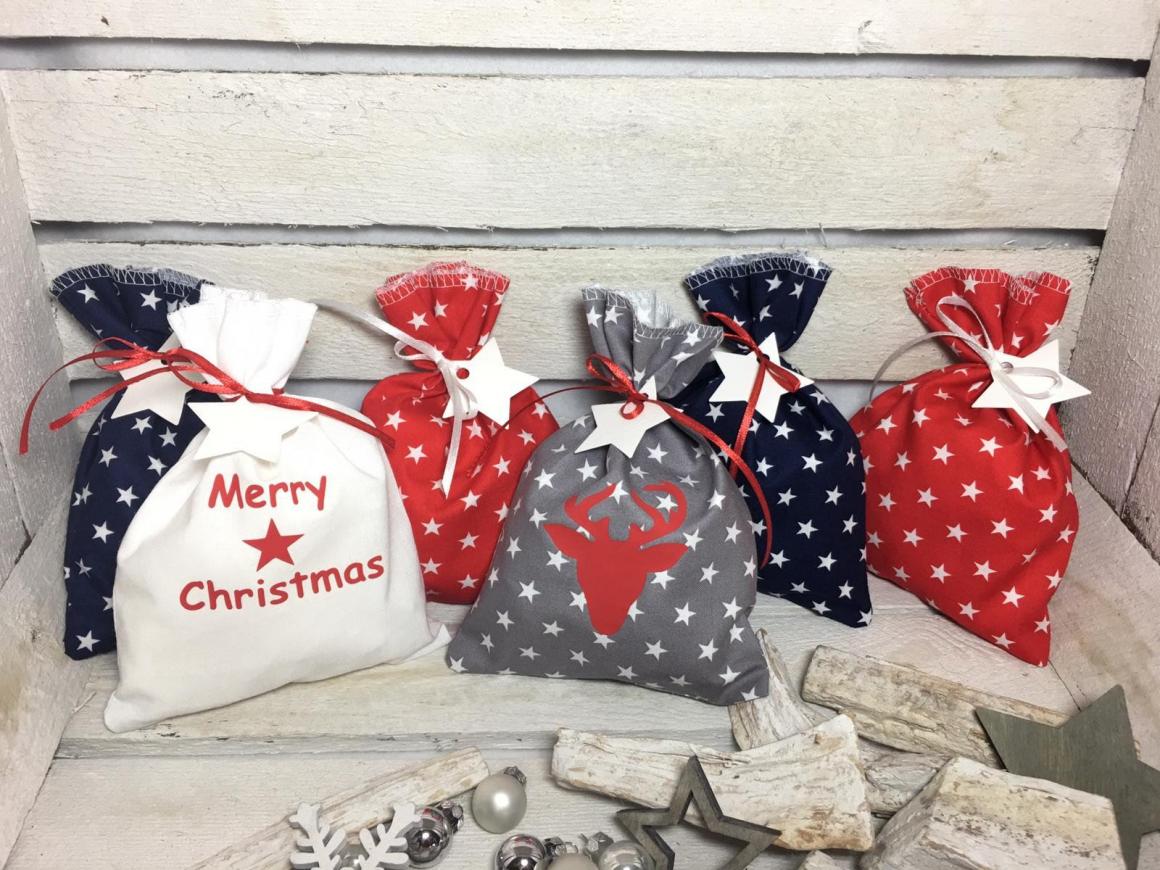 24 schöne und liebevoll genähte Baumwollsäckchen,farblich abgestimmt und einige mit bedruckten Motiven.