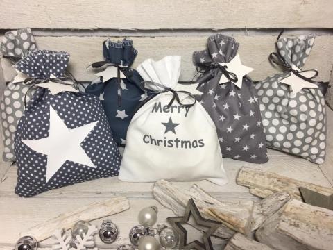 24 schöne und liebevoll genähte Baumwollsäckchen,farblich abgestimmt und einige mit bedruckten Motiven.