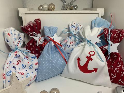 24 schöne und liebevoll genähte Baumwollsäckchen,farblich abgestimmt und einige mit bedruckten Motiven.