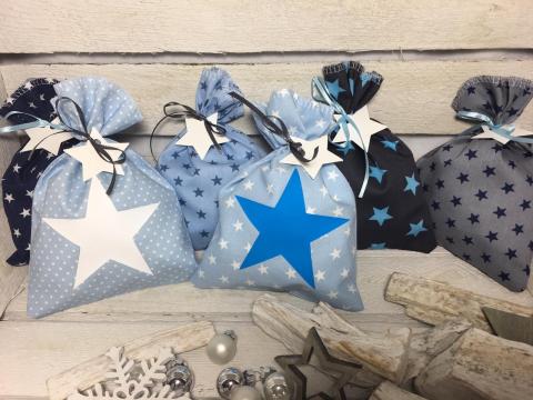 24 schöne und liebevoll genähte Baumwollsäckchen,farblich abgestimmt und einige mit bedruckten Motiven.