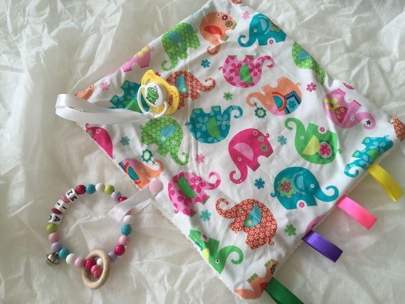 Das Schnuffeltuch hat eine Frotteerückseite und ist inkl. dem Namensgreifling,der zum Waschen des Tuches einfach abgenommen werden kann.