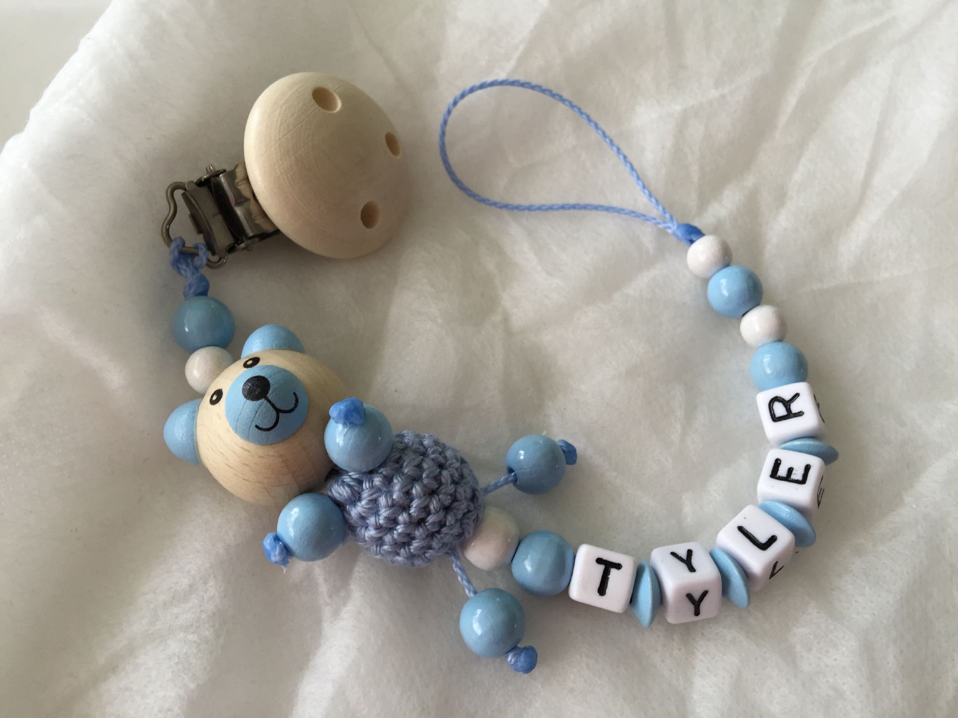Schnullerkette mit Namen(Spitznamen) des Kindes