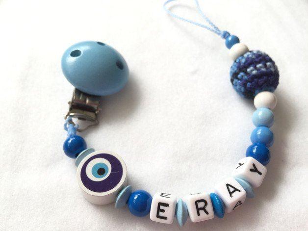 Schnullerkette Nazar Türkisches Auge Blau Weiss