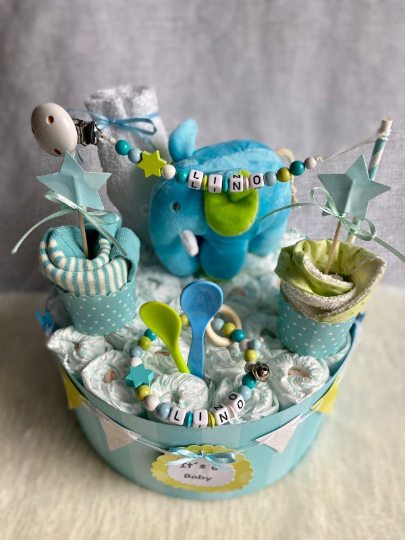 Windeltorte Elefant lemon blau weiss